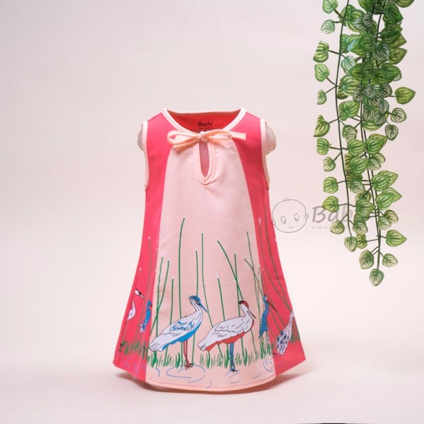 Đầm thun cát in hạc cho bé gái đáng yêu – Form đầm suông dễ mặc, màu sắc và họa tiết in hình sắc sảo cực đẹp. Dành cho bé từ 9 tháng đền 7 tuổi.